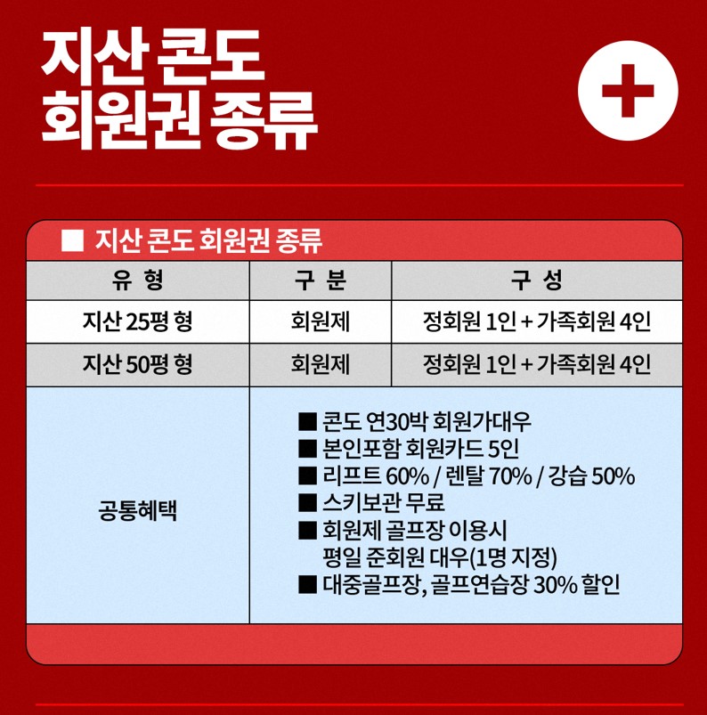 지산리조트 스키회원권 종류 & 혜택